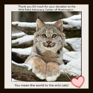 | The mission of the Wild Felid Advocacy Center of Washington would not be possible without your support. We receive no State or Federal funding. We have no paid staff - 100% of your donation directly benefits our Mission. The Wild Felid Advocacy Center is a 501(c)3 non-profit organization. IRS # 38-3771133 All donations are tax deductible. |